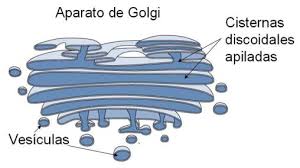El complejo o aparto de Golgi o dictiososma este está formado por 3 a diez sacos aplanados o cisternas y apilados pero se encuentran limitados por membranas; tiene la función de producir membranas, orgánulos y otras sustancias muy complejas. Todo este proceso se hace porque el retículo endoplásmico rugoso y liso las mandan ahí proteínas y lípidos.